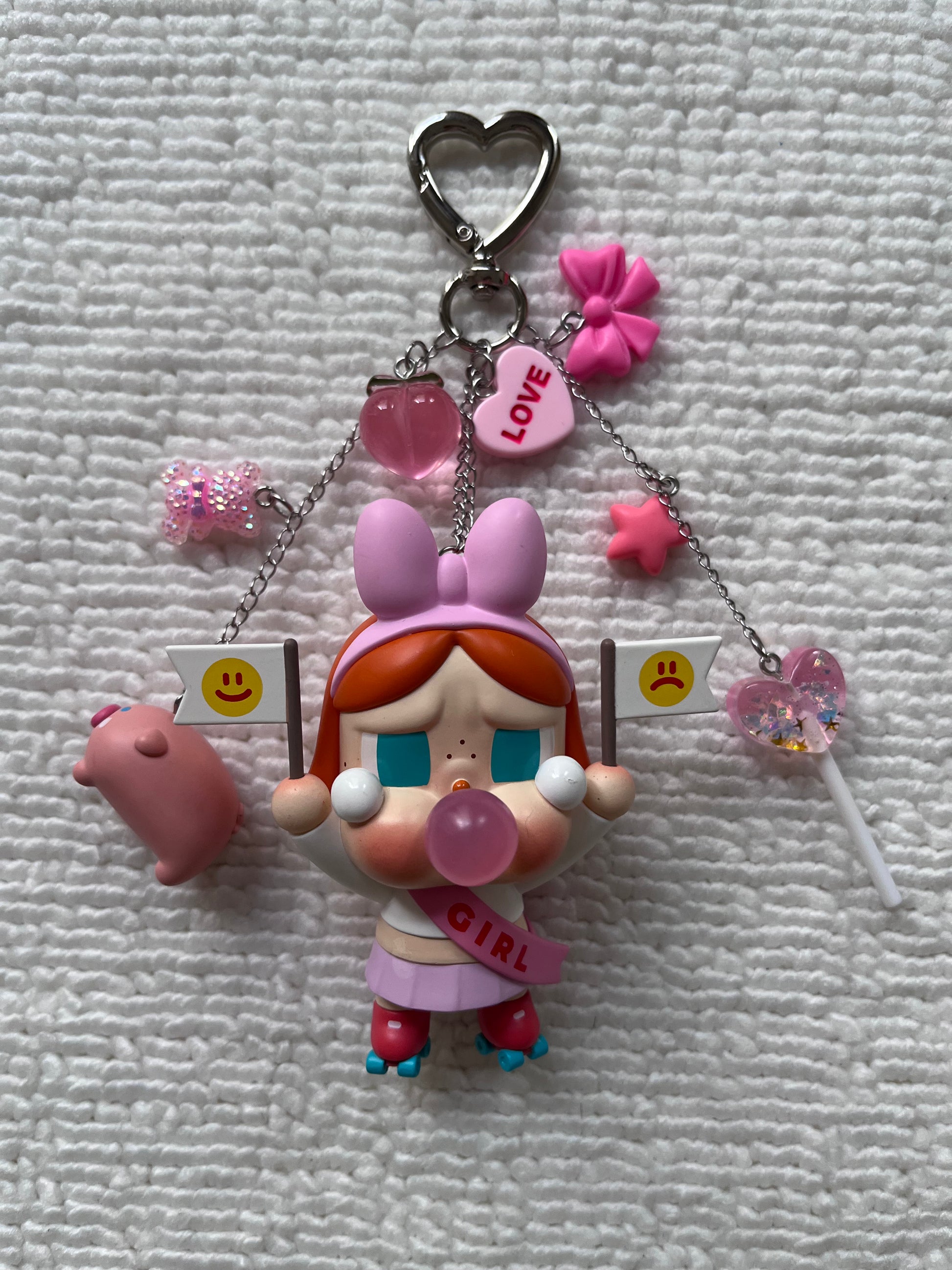 * Les figurines utilisées sont des originales Pop Mart (série Crybaby Crying Parade). Chaque pièce est ensuite entièrement customisée et transformée à la main en porte-clés unique. Aucun modèle n'est identique, chaque création est pensée comme une petite œuvre d'art.