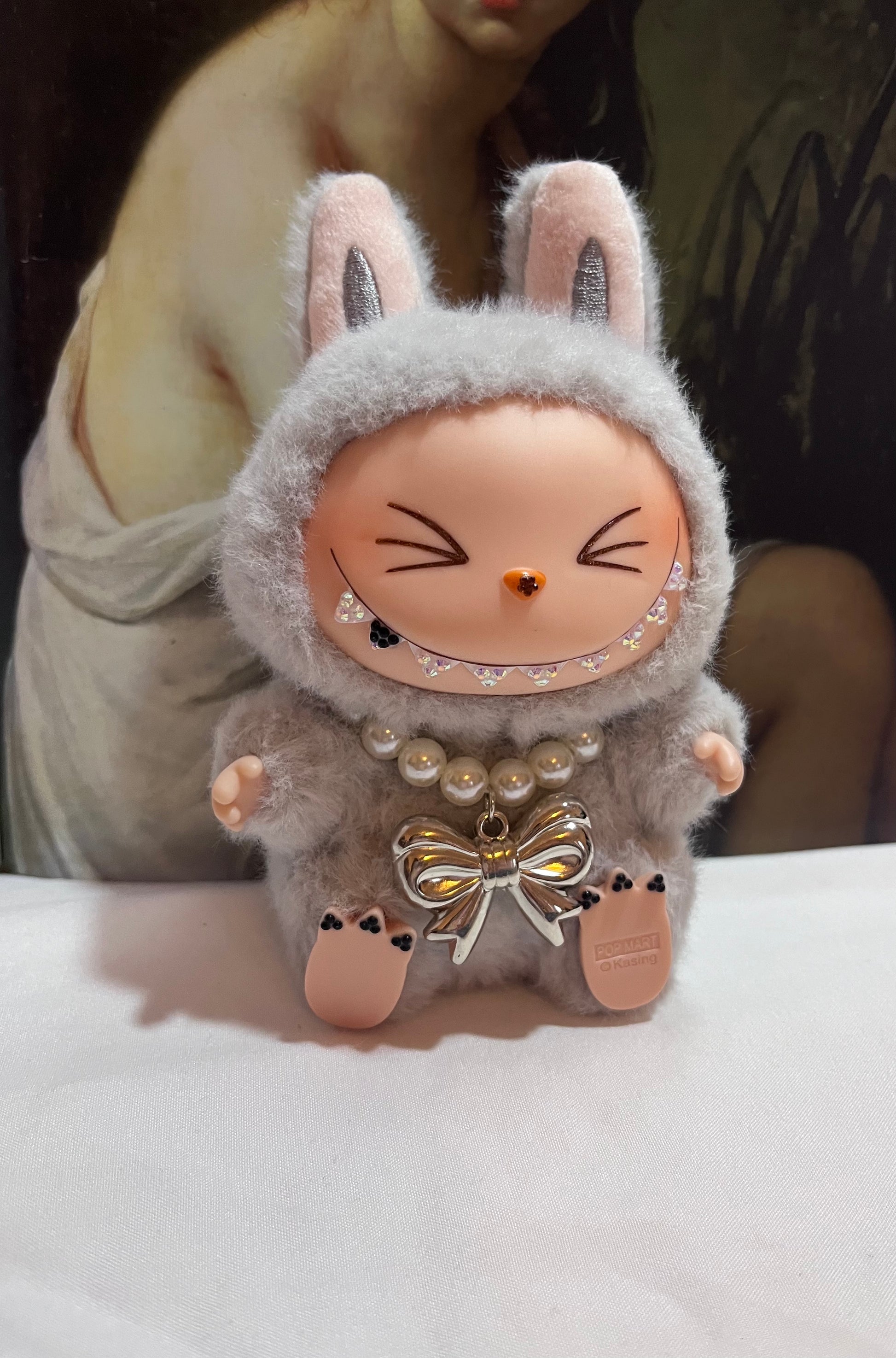 Authentique Labubu Have The Seat HeHe, personnalisé avec strass par mes soins.Â