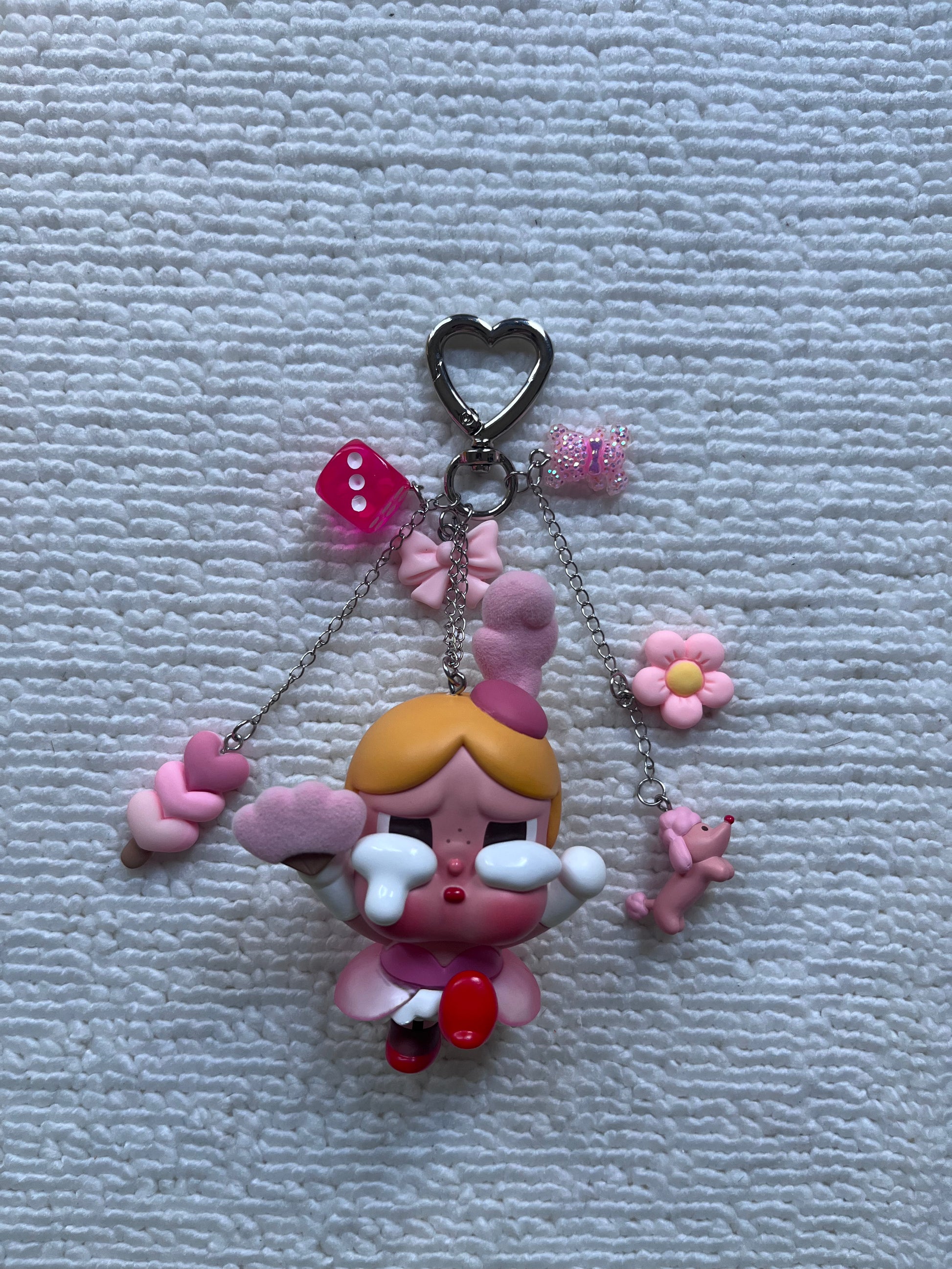 * Les figurines utilisées sont des originales Pop Mart (série Crybaby Crying Parade). Chaque pièce est ensuite entièrement customisée et transformée à la main en porte-clés unique. Aucun modèle n'est identique, chaque création est pensée comme une petite œuvre d'art.